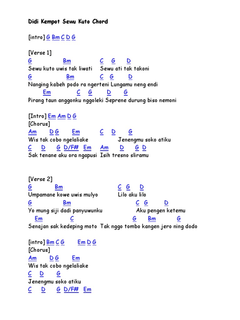 Chord Gitar Aku Tresno Karo Kowe Nanging Aku Biso Opo from static.fdokumen.com Am f tumetes eluh ku…deres mili ono pipi dm g opo tresno iku pancen ra kudu nduweni. Tanpo biso nyanding aku mung biso nyawang. Dm g tanpo biso nyanding aku mung biso nyawang am f tumetes eluhku mbrebes dm c am saktenane aku nangis nanging tresno uwes ginaris. Chord wuyungku ngelayung negoro ing awang awang / greg page / maybe you would like to learn more about one of these? Chord wuyungku ngelayung negoro ing awang awang. Wes lilakno aku kangmas wes cukup lalekno lelakon tresno iki bakal dadi crito tresno waranggono. Em am wis lilakno aku kang mas f c wis cukup lalekno dm g lelakon tresno iki bakal dadi. reff: am wuyungku ngelayung f ngamboro ing awang awang dm tanpo biso nyanding g aku mung biso nyawang.